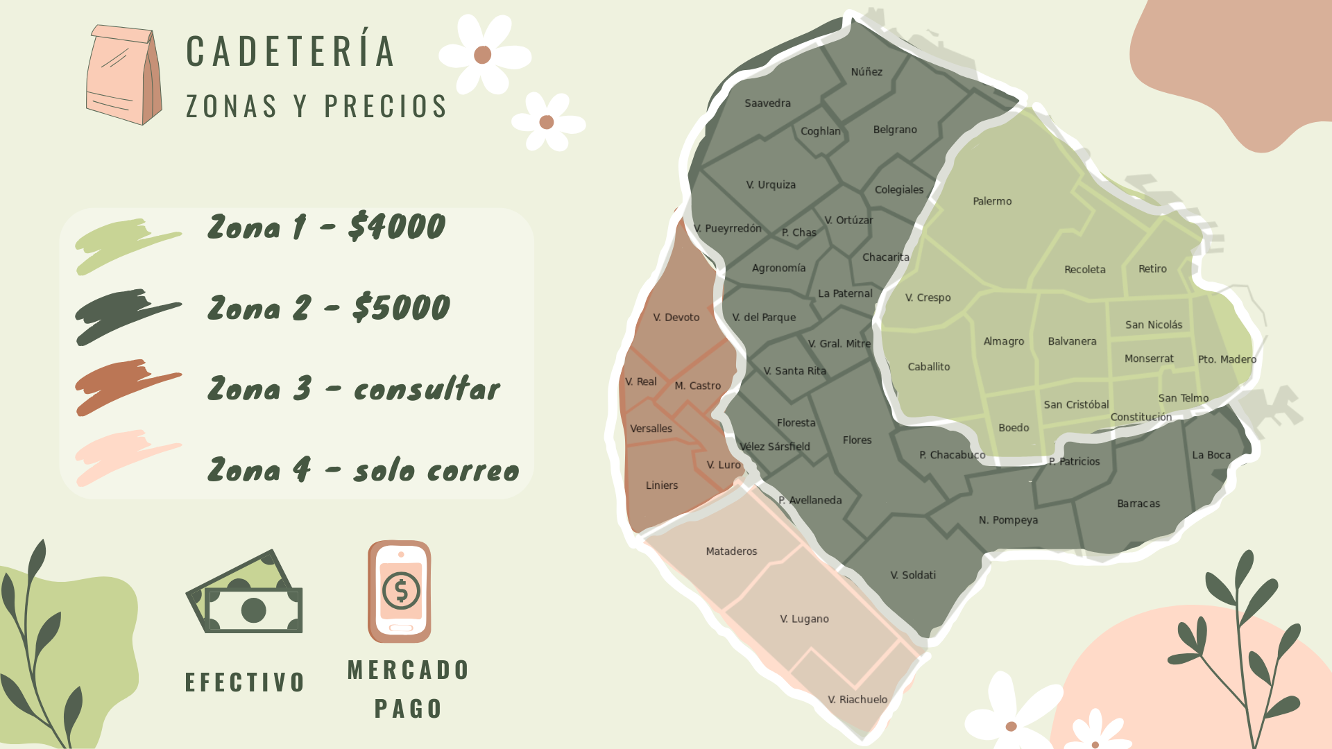 Pagá con tarjeta o efectivo