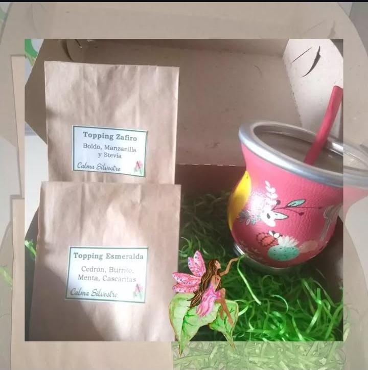 Mate, bombilla y 2 toppings para mate de 50 grs c/u. 🎁